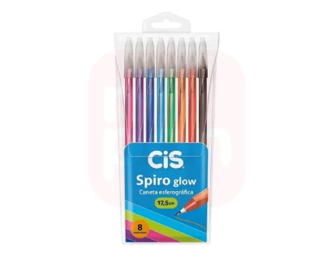 Caneta Esferográfica Spiro Glow 0.7mm KIT com 08 Cores - Cis