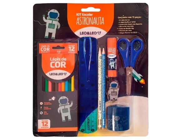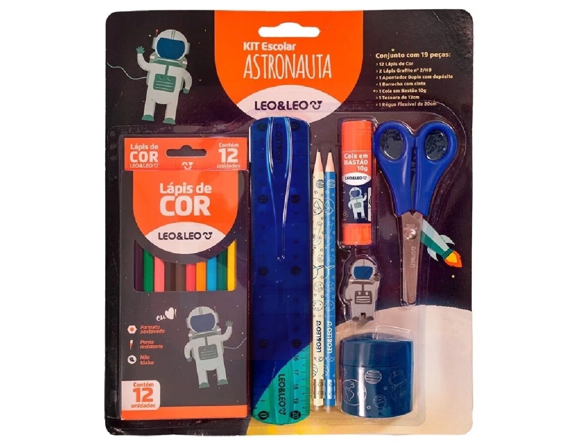 Kit Lápis de Cor 12 Cores 7 Peças Astronauta